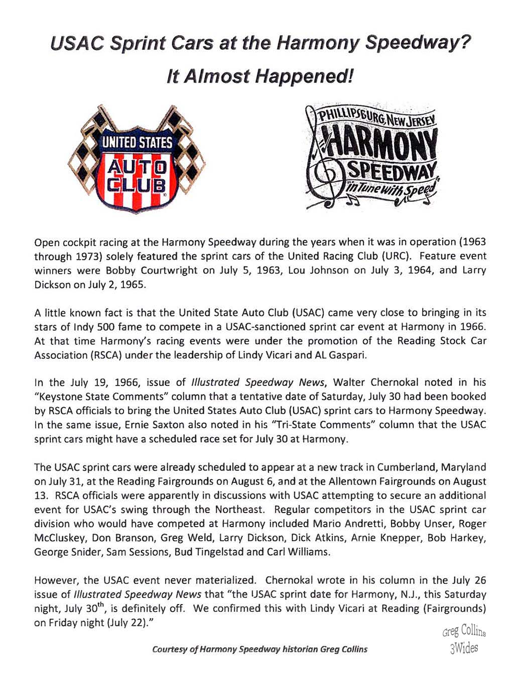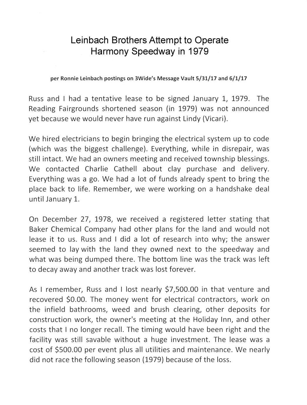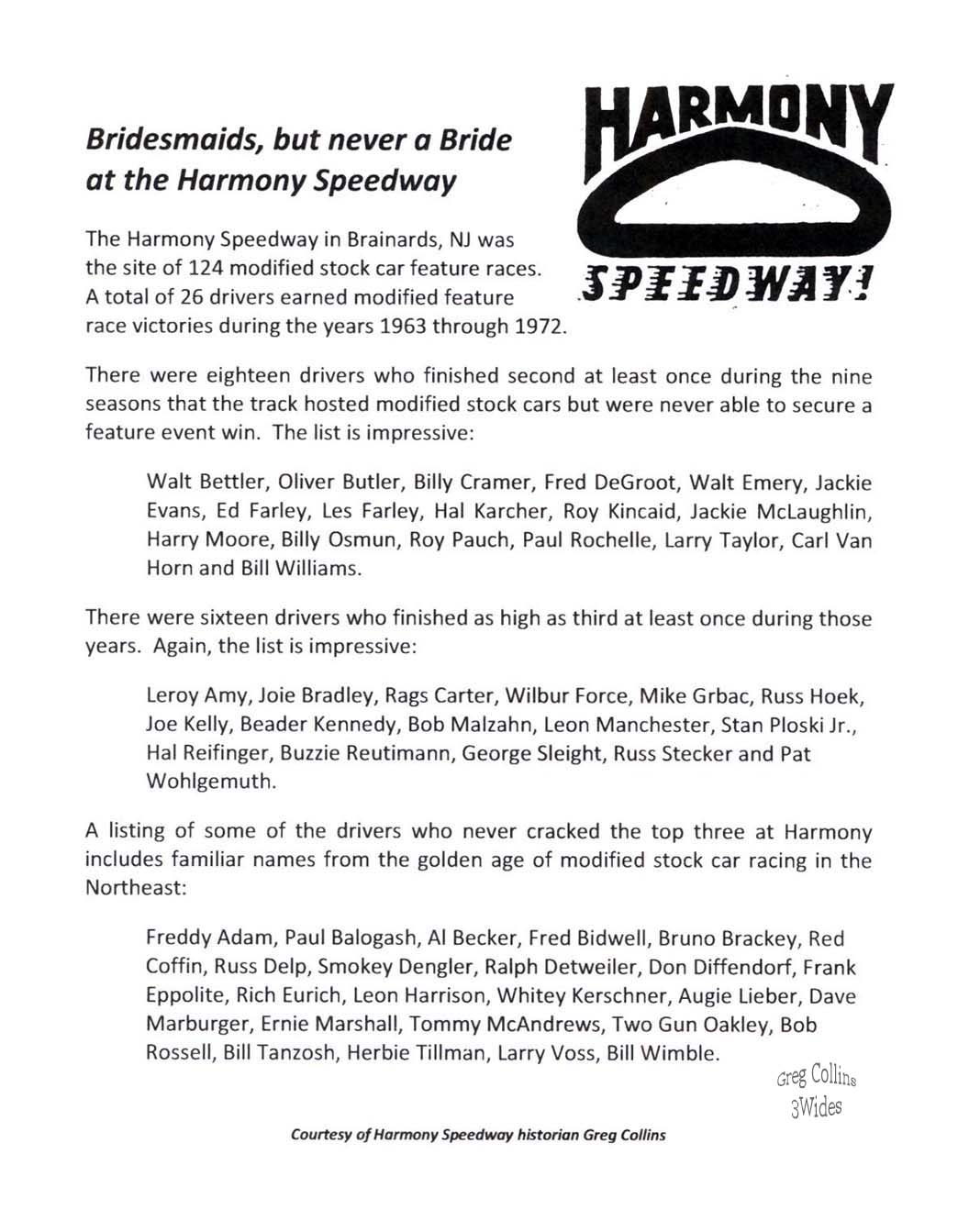 Back to Harmony Speedway Memories