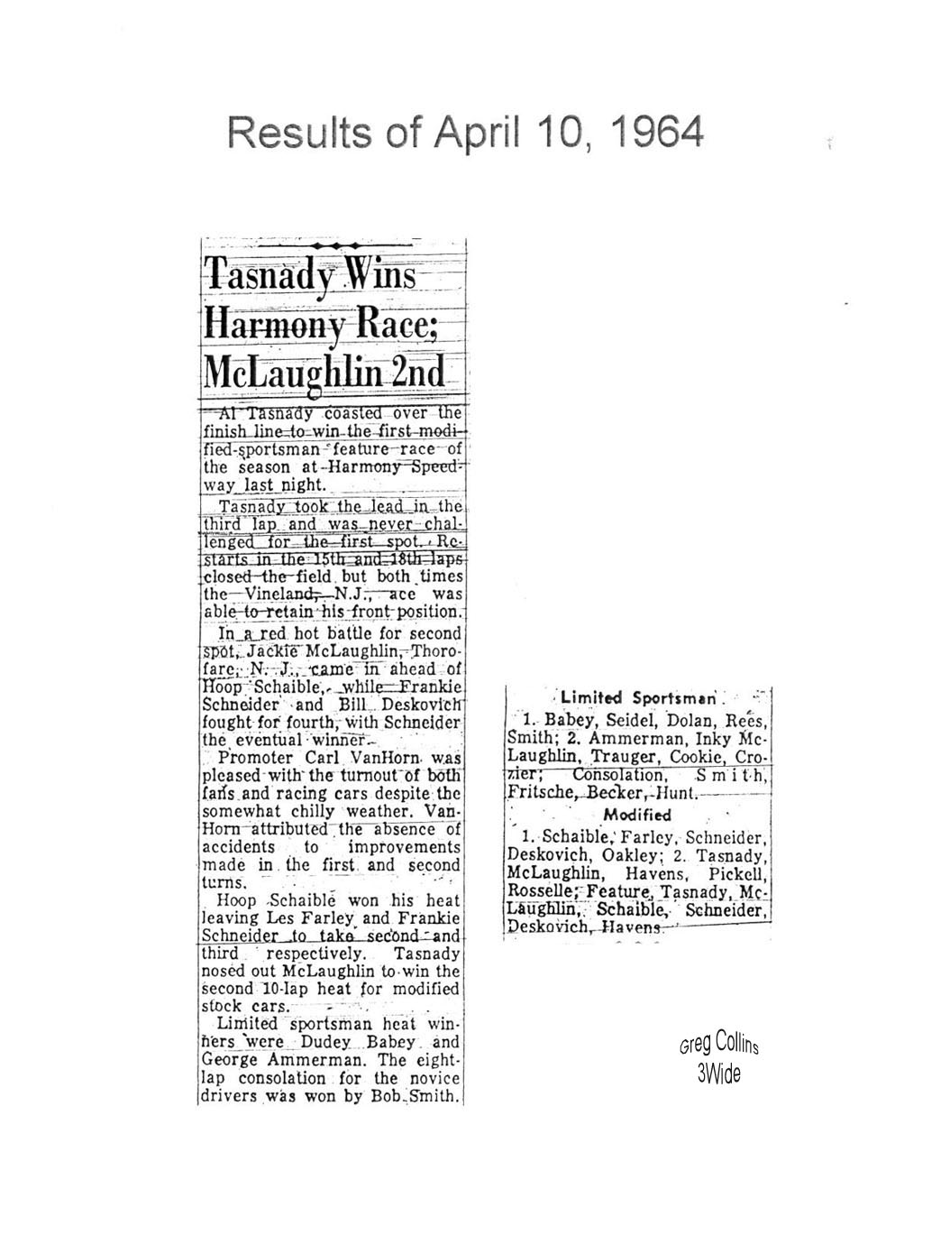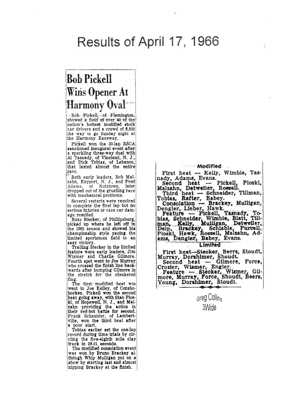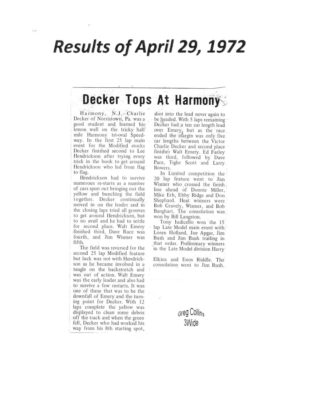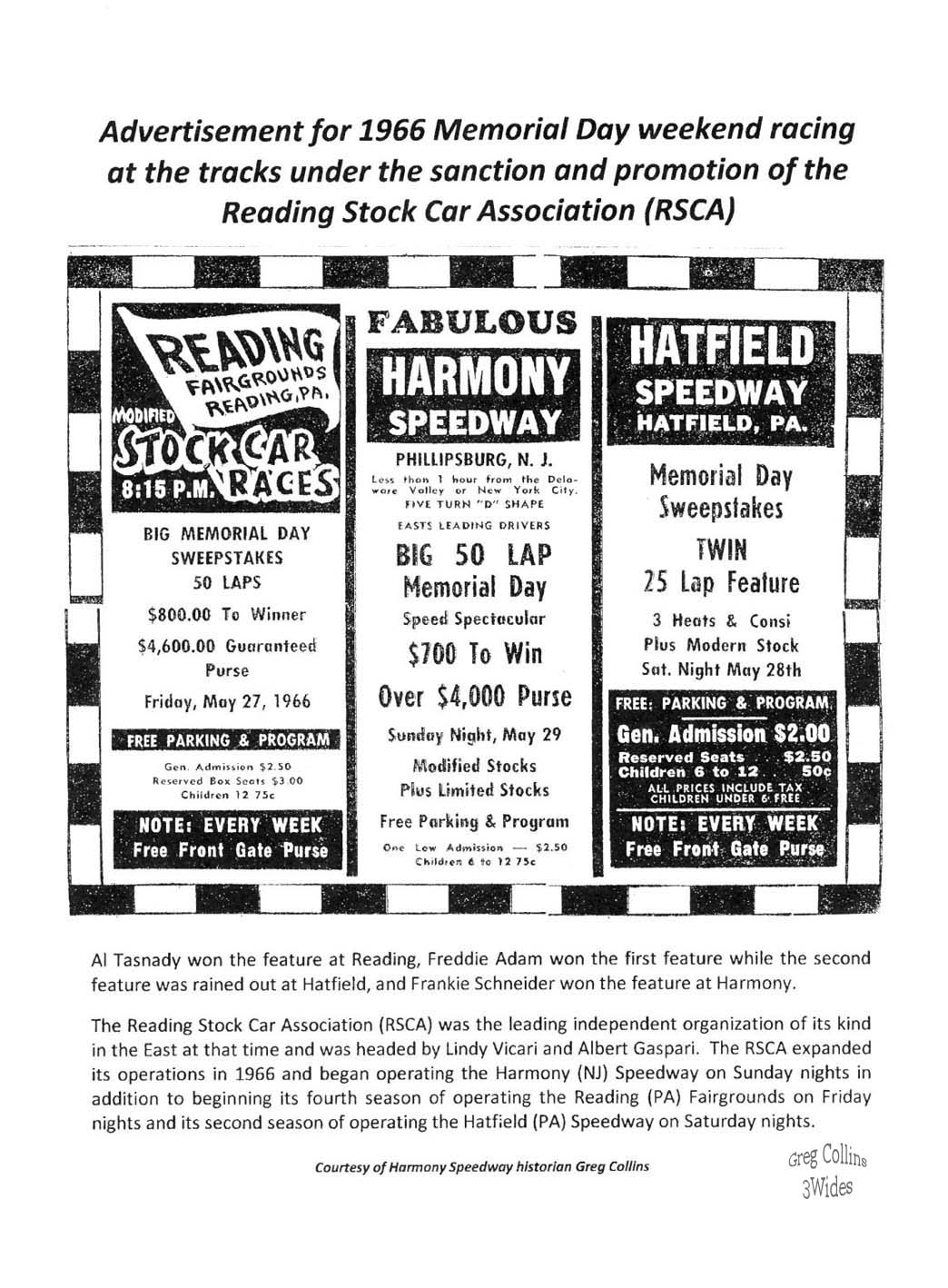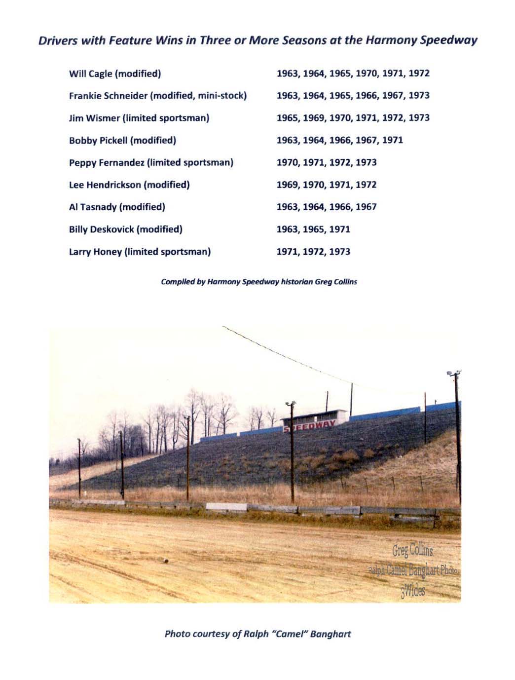 Harmony Speedway Season Opener Results (1963 - 1967, 1970 -1973) |