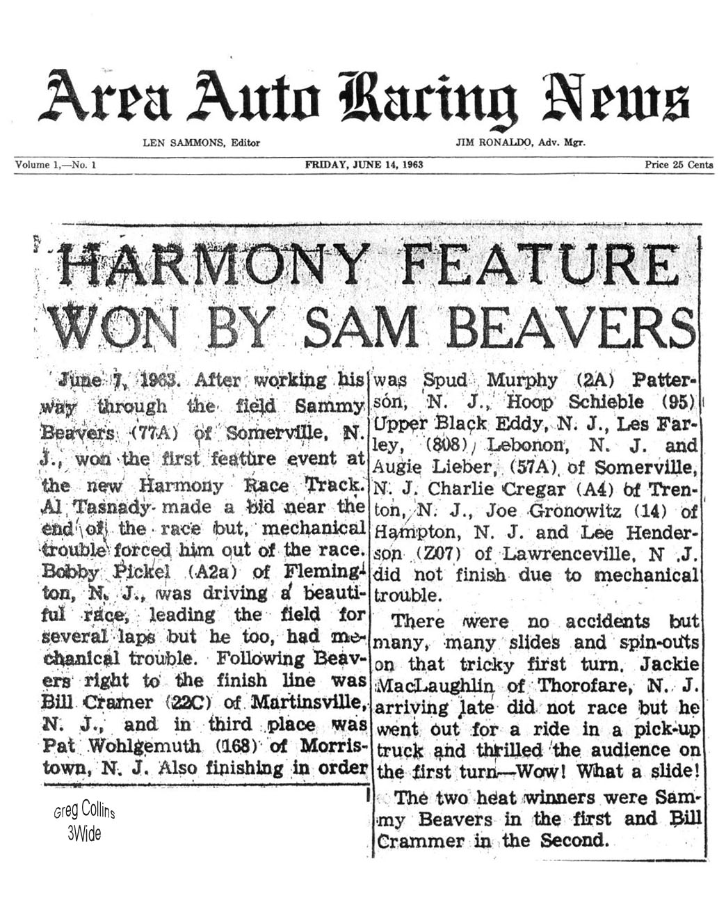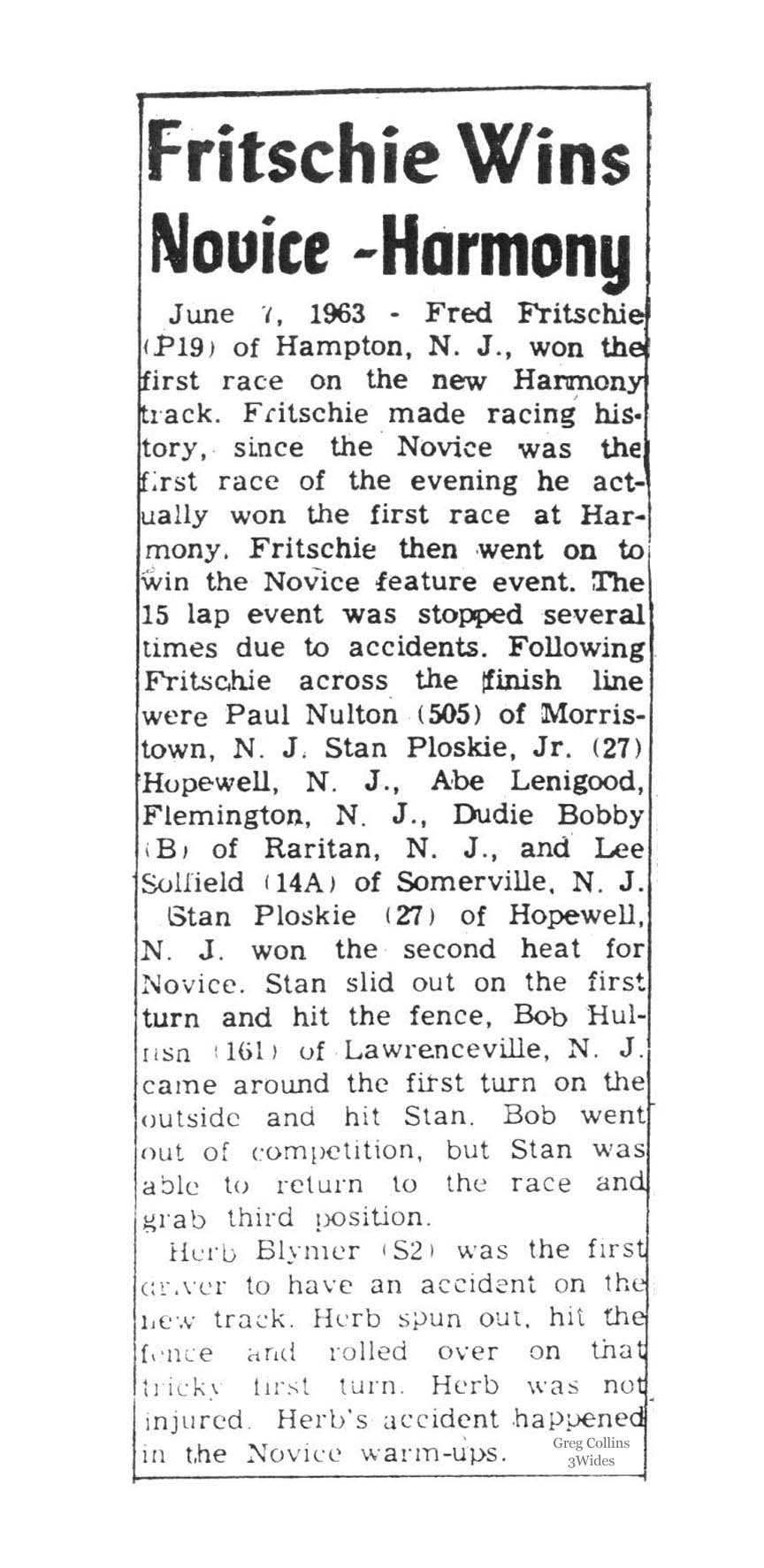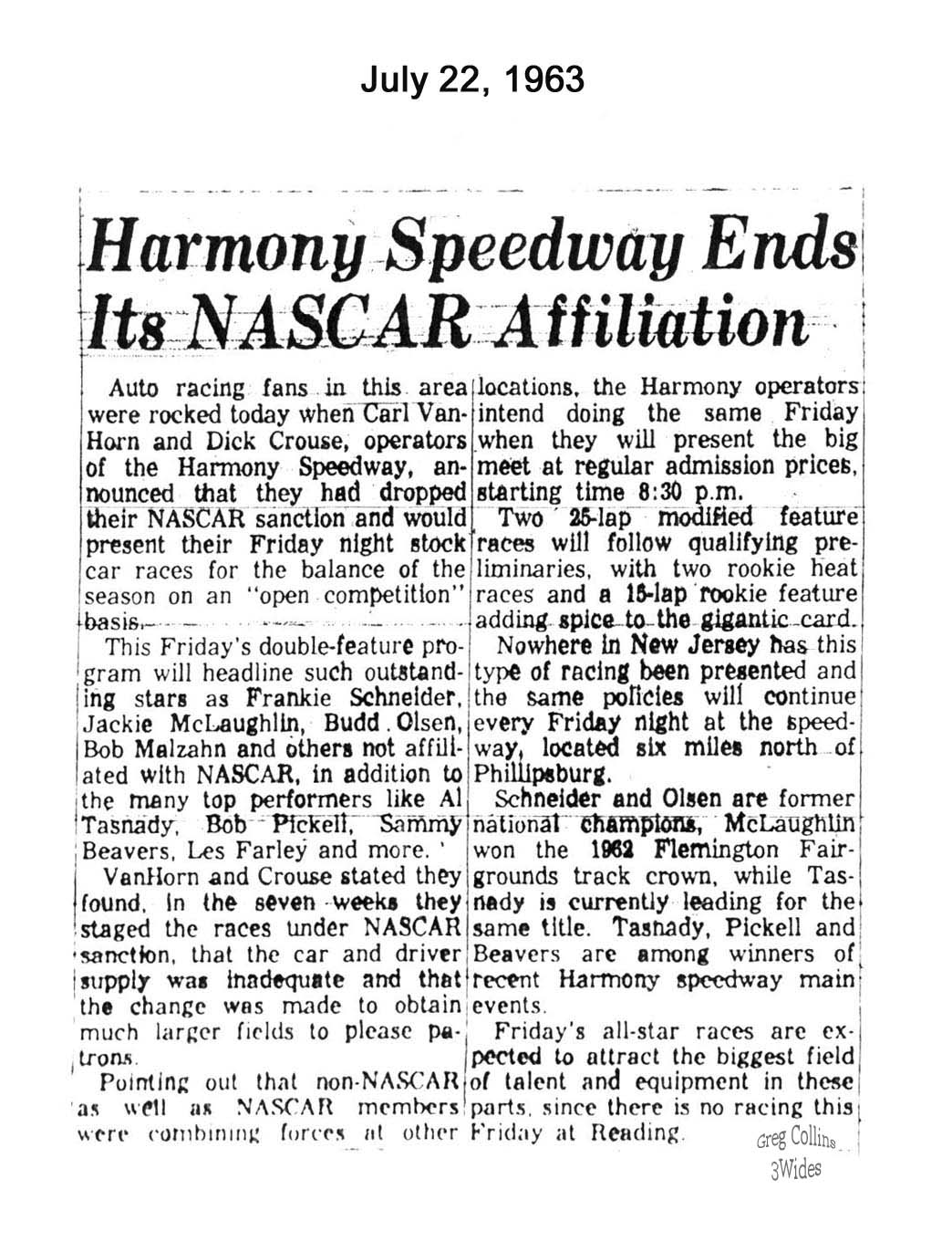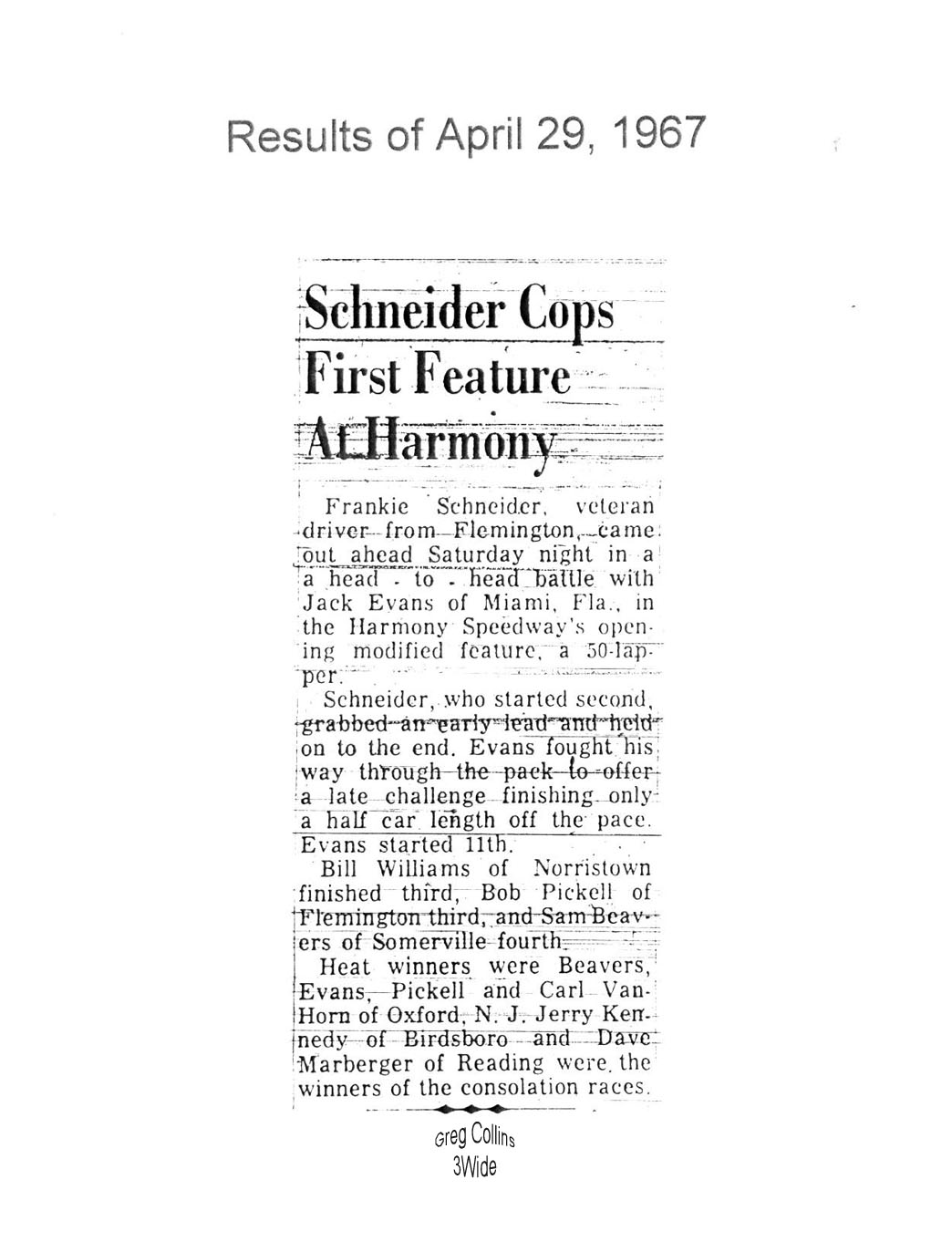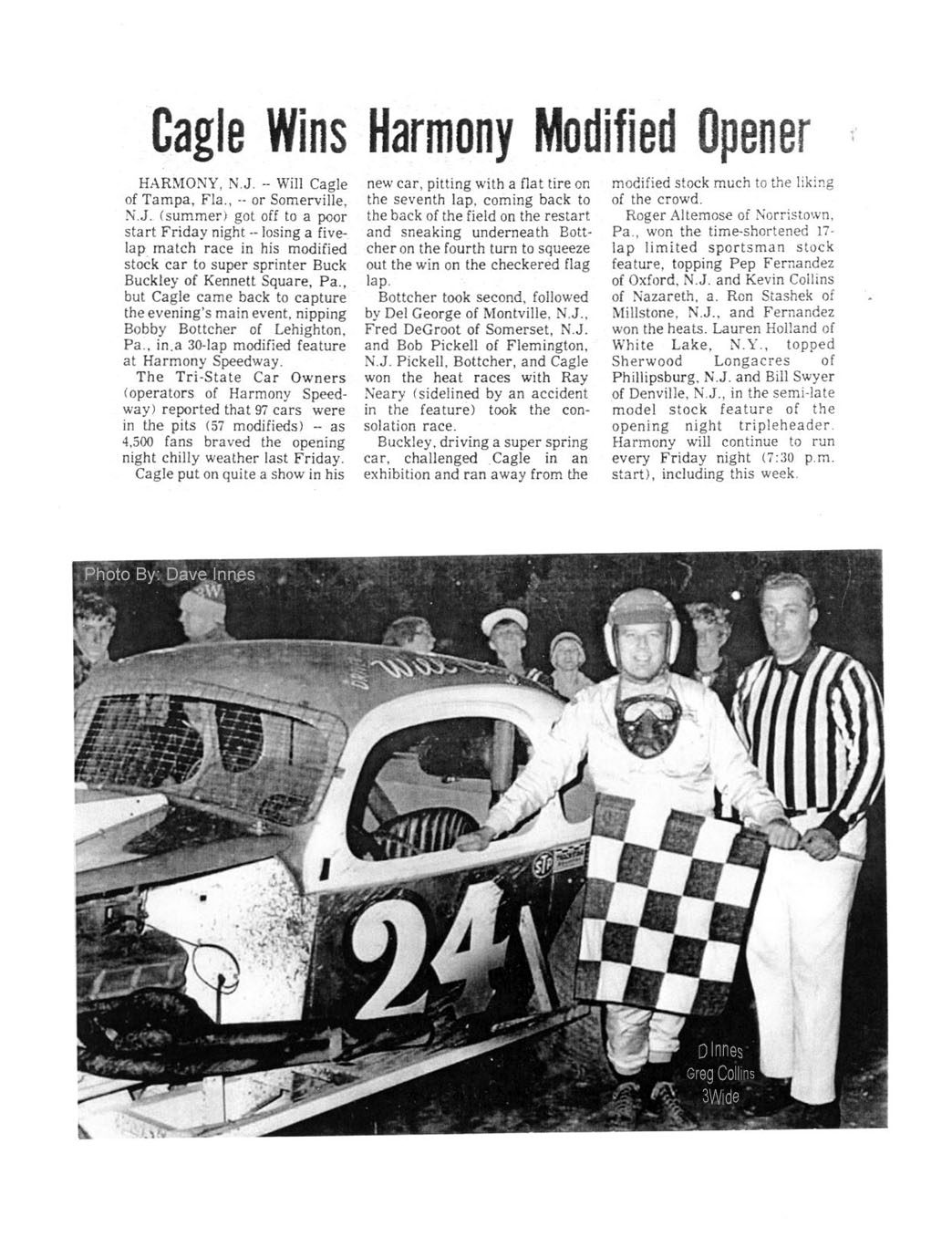 Harmony Speedway Season Opener Results (1963 - 1967, 1970 -1973) |