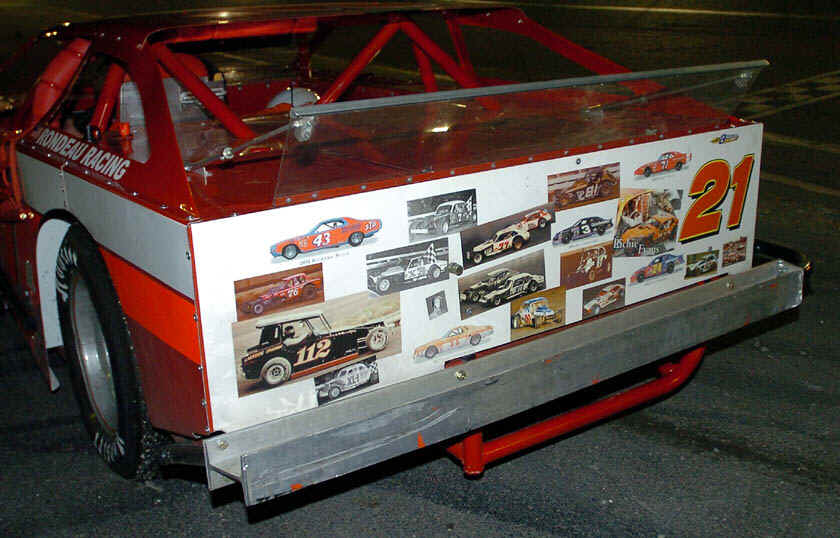 We asked: "Can you name at least 10 of the drivers/cars pictured on the backside of Wall Speedway driver Kevin Eyre's #21?"
