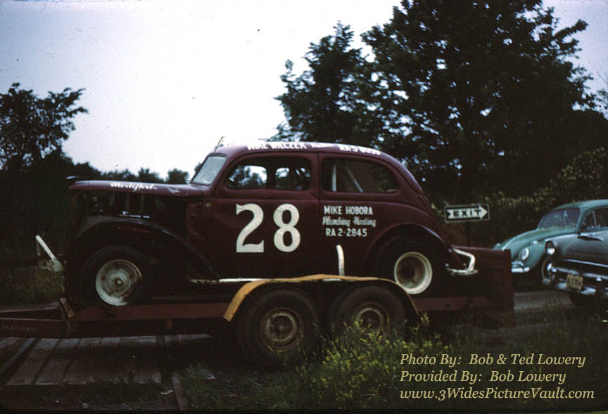 speedway... Sometimes its the little things about a photo that make you think. Its not a big deal, and life would have went on just fine if I hadn't remembered this, but I forgot about the railroad tracks that you had to cross over on the way into the back entrance at Flemington... As soon as I started thinking about that, I remembered that feeling you'd get the closer you got to the the entrance gate... and then you'd spot a car on a trailer... maybe it wasn't one of your favorites, but it was a racecar, it and it was cool to get to have your own personal showing of it.... Just you and maybe your dad... checking out a racecar on your way into the track... If it wasn't one of the top guys, my dad would usually be amazed that I knew who it was anyhow... "Whose car is that he'd ask... and I'd surprise him with that's Clyde Suydam's #9.... or John Presley's #16... I don't know if he'd remember if you asked him 30 seconds later, but it was cool to impress your dad once in a while (kinda neat when you realize that you knew something the old man didn't!) Thanks for providing the memory Bob Lowery. |
