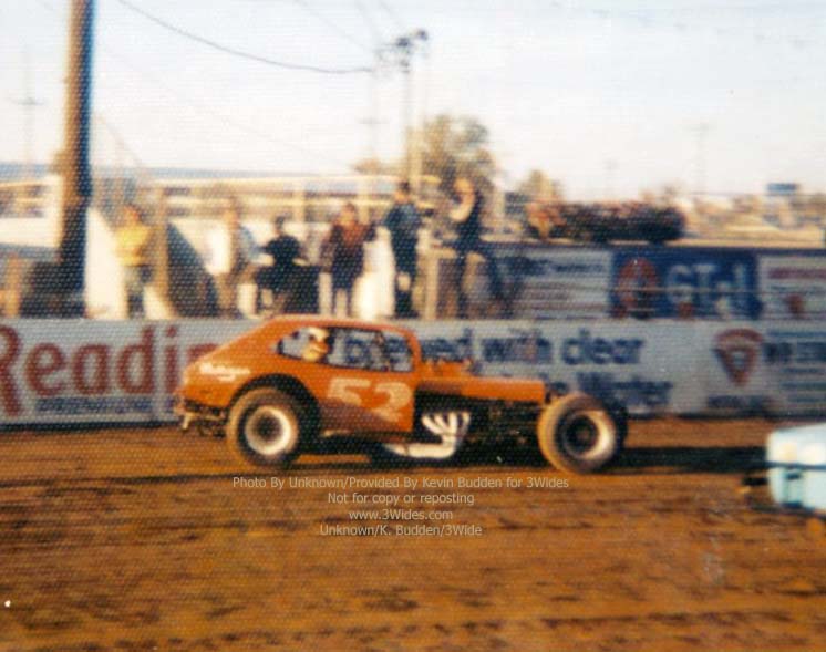 | Comments: | Comment: Not sure what came first... the solid orange car (above) or the black car with the tiger stripes, but only remember Del George behind the wheel of both. Here's one of Del on the frontstretch at Reading. |