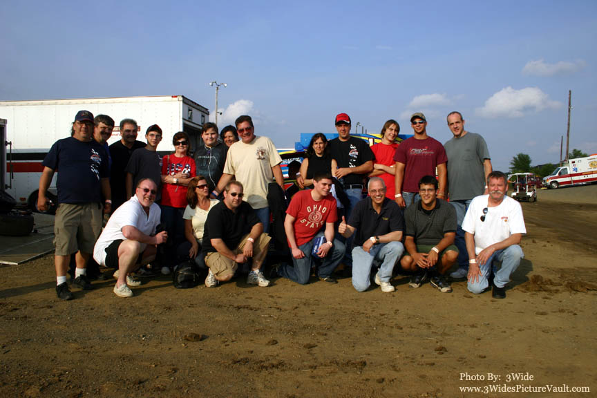 The crew from night sponsor "Joy Auto Parts... and somewhere behind them is John McClelland in his #44, prior to heat race action.