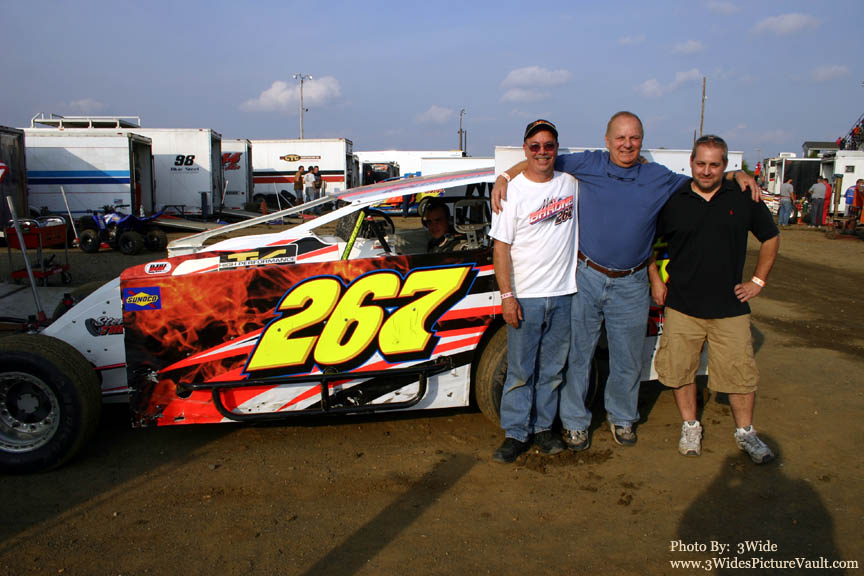 Here's modified driver Chris Grbac (left), modified car owner Wayne Carberry (right) and engine builder John Burnett (center)