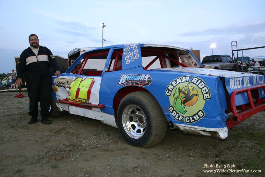 BIlly Pauch in Victory Lane? (Well, not exactly, but after winning the first 20 lapper, Billy heads from tech, back over to his pit to get ready for the second feature event.)