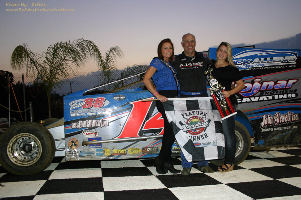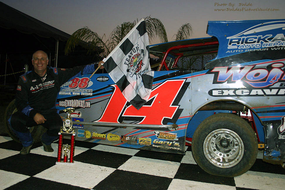 After winning the make up modified feature earlier, Willie O takes a break while