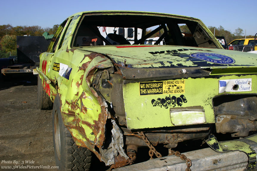John Simmons works on his son Ryan's Crate car. Chris Allen was shaking