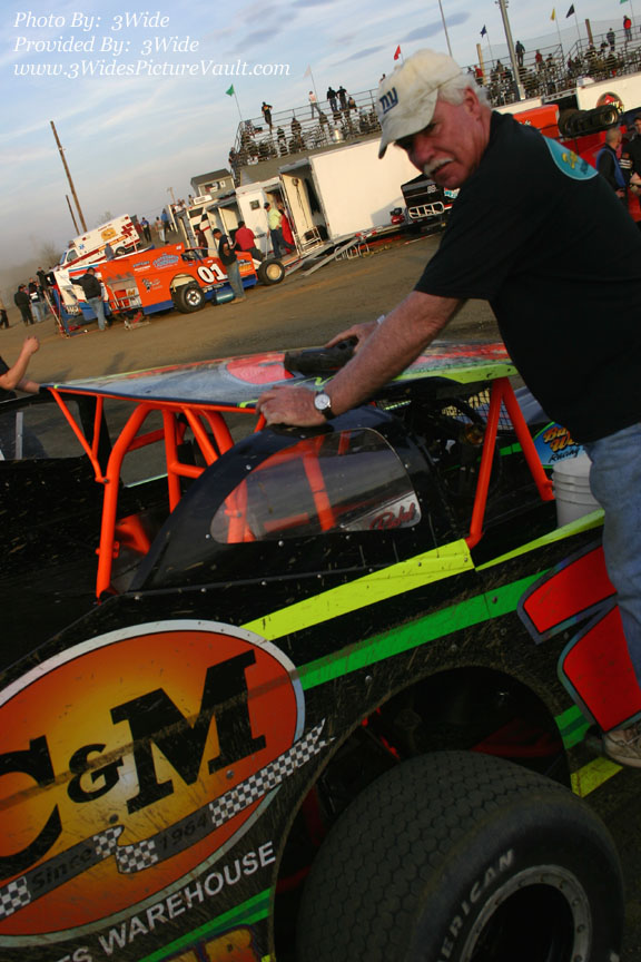Rocco Infante in victory lane after winning the Sportsman main. That's Tom
