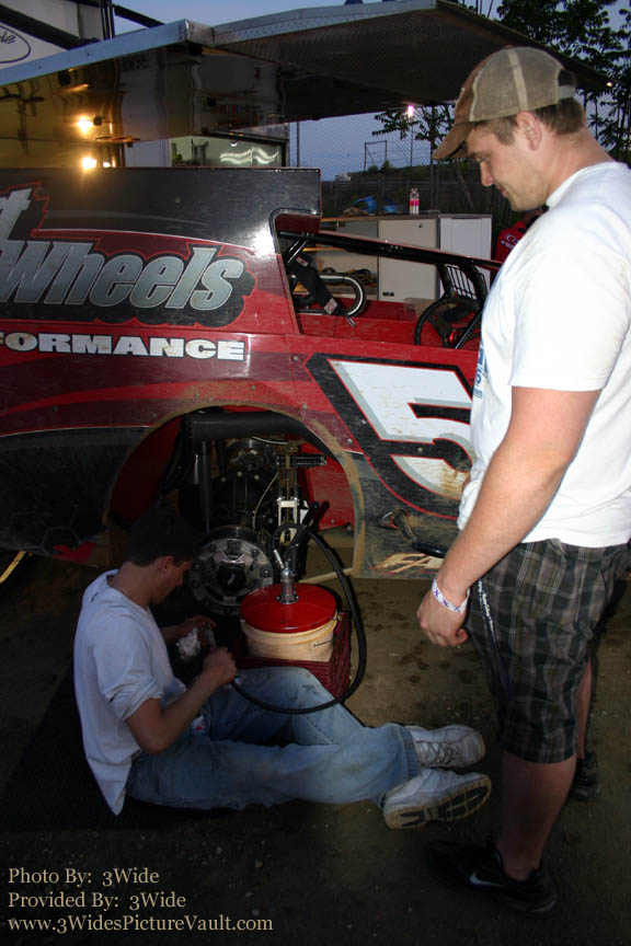 Sammy Martz and his dad "Jimmy Martz" set the toe after warmups on the #3 Modified.