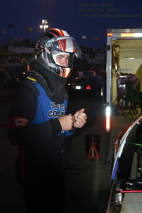 Here's Jon Haegele suited up prior to the start of the Crate Sportsman Feature