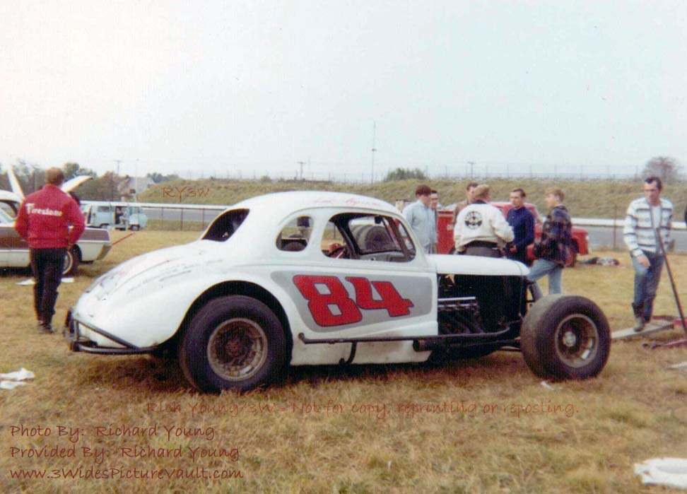 | Comments: | Comment: Frank Myronchuk's #84. In the house moving business, I thin that the Frank also built (?) owned (?) New Egypt Speedway. Other than the front fenders and the rear wheel openings being cut out a little larger than stock, this is about as complete a bodied car (37 or 38 Chevy maybe?) that I've seen. |